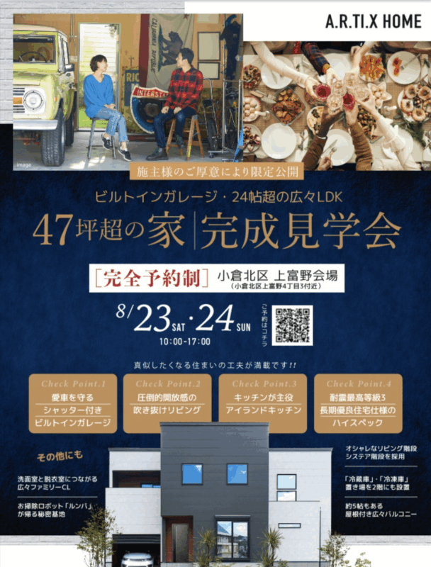 8月23日(土)・24日(日)の2日間10:00~17:00までの完全予約制!この機会に、最新の住まいづくりの工夫を直接体感してみませんか?