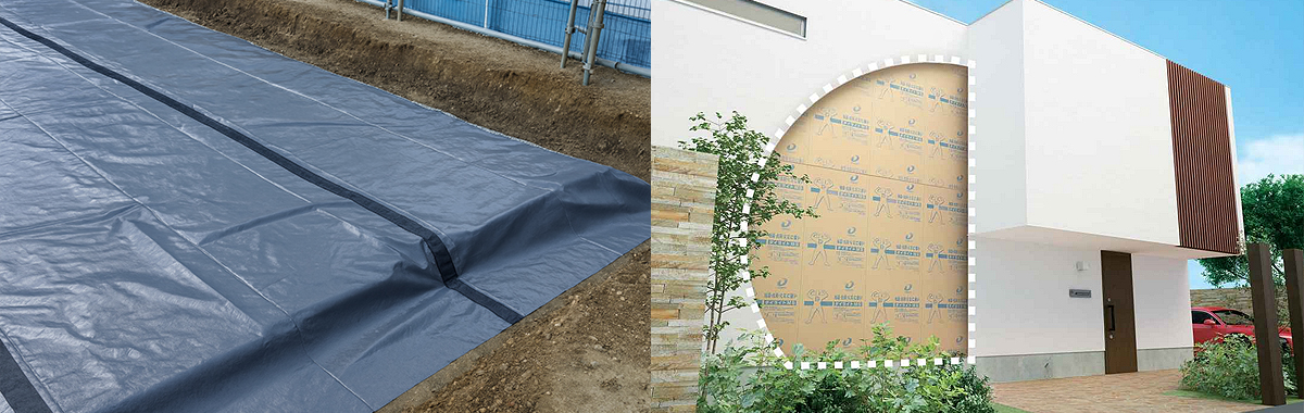 基礎の下に敷き込む防蟻・防湿シート「ターミダン」は、薬剤を散布せずにシロアリの侵入を物理的に防ぐ新しい施工方法。同時に地面からの湿気も遮断し、床下環境を清潔で快適に保ちます。A.R.TI.X HOMEでは、このターミダンシートを採用し、住まいを見えない部分からしっかりと守ります。